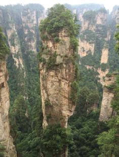 8日早上,我們乘坐“世界第一梯”——百龍?zhí)焯葜猎医绶屙敚@里是舉世聞名,奇特罕見的砂巖地貌。舉目遠(yuǎn)望,三千奇峰盡收眼底,怪石嶙峋,星羅棋布,雄險秀野,神態(tài)各異。峽谷深處,千百根石峰石柱奇?zhèn)ネ涣ⅰ>椭缬⑽鋵洠会隙胫澹朴旅蛪咽俊L鞖怅幊粒缕鹦∮辏藭r,峰谷內(nèi)云翻霧涌,數(shù)座山峰如中流砥柱巋然屹立于云霧之中,云海淼淼,如入蓬萊仙境,那里面一定住著神仙吧。