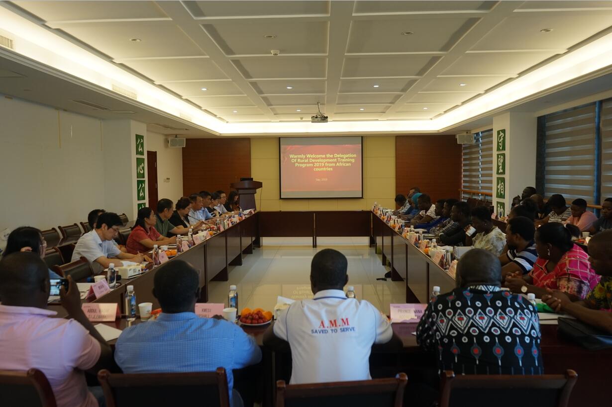 ??? 9月19日,商務(wù)部主辦、農(nóng)業(yè)農(nóng)村部管理干部學(xué)院組織“2019年非洲英語國家農(nóng)村發(fā)展研修班”蒞臨荃銀高科調(diào)研座談。農(nóng)業(yè)農(nóng)村部管理干部學(xué)院對外培訓(xùn)交流部主任望益群,安徽省農(nóng)業(yè)委員會(huì)外事外經(jīng)處調(diào)研員閆玉玲,合肥市農(nóng)業(yè)委員會(huì)外事外經(jīng)處處長吳正東等陪同調(diào)研。荃銀高科副董事長、總經(jīng)理張琴,工會(huì)主席兼辦公室主任鄭滿生,荃銀科技副總經(jīng)理金毅、總經(jīng)理助理丁松等參加了座談會(huì)。