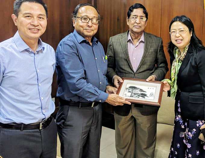??? 會(huì)見伊始,拉扎克部長(zhǎng)對(duì)荃銀高科一行來訪表示熱烈歡迎,在聽取了荃銀高科過去十多年間在孟加拉推廣雜交水稻與優(yōu)質(zhì)蔬菜等農(nóng)作物良種、開展本土化品種選育和種子生產(chǎn)情況匯報(bào)后,給予高度贊賞與肯定。拉扎克部長(zhǎng)介紹了孟加拉糧食生產(chǎn)及農(nóng)業(yè)現(xiàn)狀,農(nóng)業(yè)部當(dāng)前鼓勵(lì)農(nóng)民以非傳統(tǒng)種植代替過去的傳統(tǒng)作物種植,以獲得更高經(jīng)濟(jì)效益。他建議,荃銀高科作為中國(guó)知名種業(yè)高科技企業(yè),對(duì)亟待加強(qiáng)的孟加拉食品加工業(yè)進(jìn)行投資,該國(guó)農(nóng)業(yè)部將在企業(yè)用地、擴(kuò)大規(guī)模方面給予支持,提供保障。他表示,將對(duì)荃銀高科與孟加拉農(nóng)業(yè)部農(nóng)業(yè)發(fā)展公司在雨季水稻新品種選育及種子生產(chǎn)領(lǐng)域方面的合作給予積極支持。