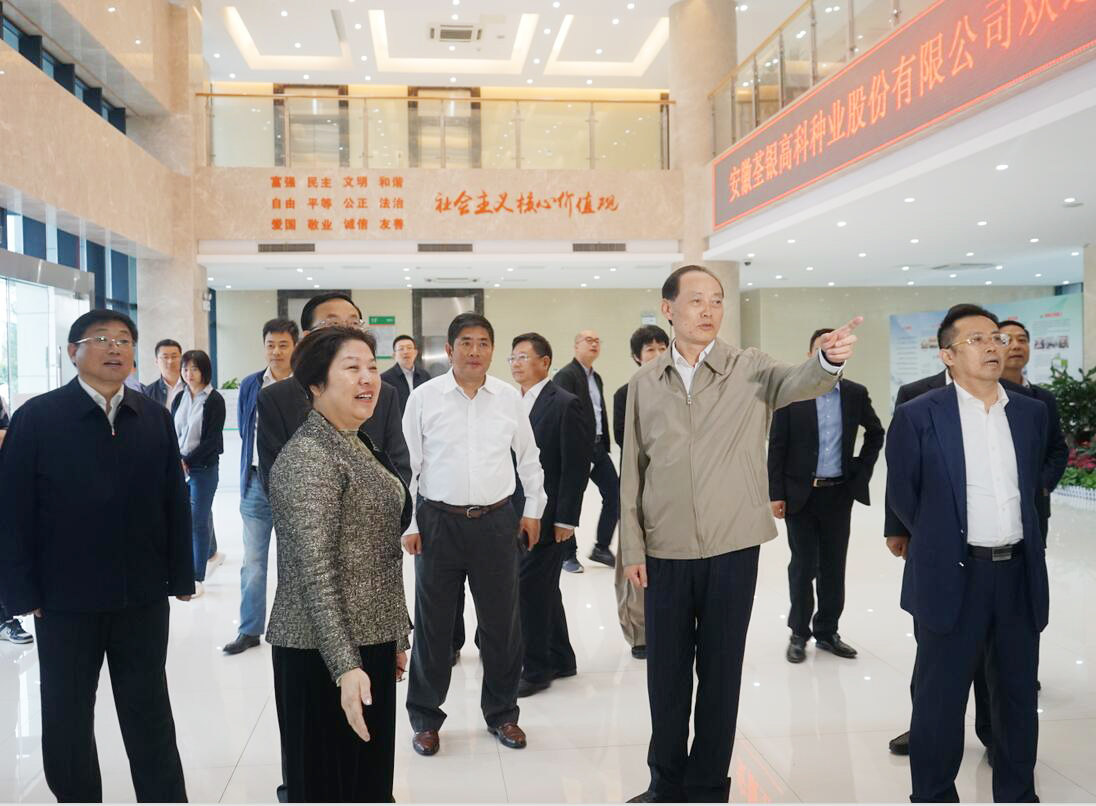 ??? 2019年10月11日下午,農業農村部黨組副書記、副部長余欣榮蒞臨荃銀高科考察調研,農業農村部鄉村產業發展司司長曾衍德、辦公廳副主任寧啟文參加調研。安徽省政府副秘書長張冬云,省農業農村廳黨組成員、副廳長王華,合肥市副市長王民生等領導陪同考察。荃銀高科副董事長、總經理張琴,常務副總經理王玉林,副總經理、首席技術官張從合,副總經理朱全貴、江三橋等熱情接待了余欣榮副部長一行。