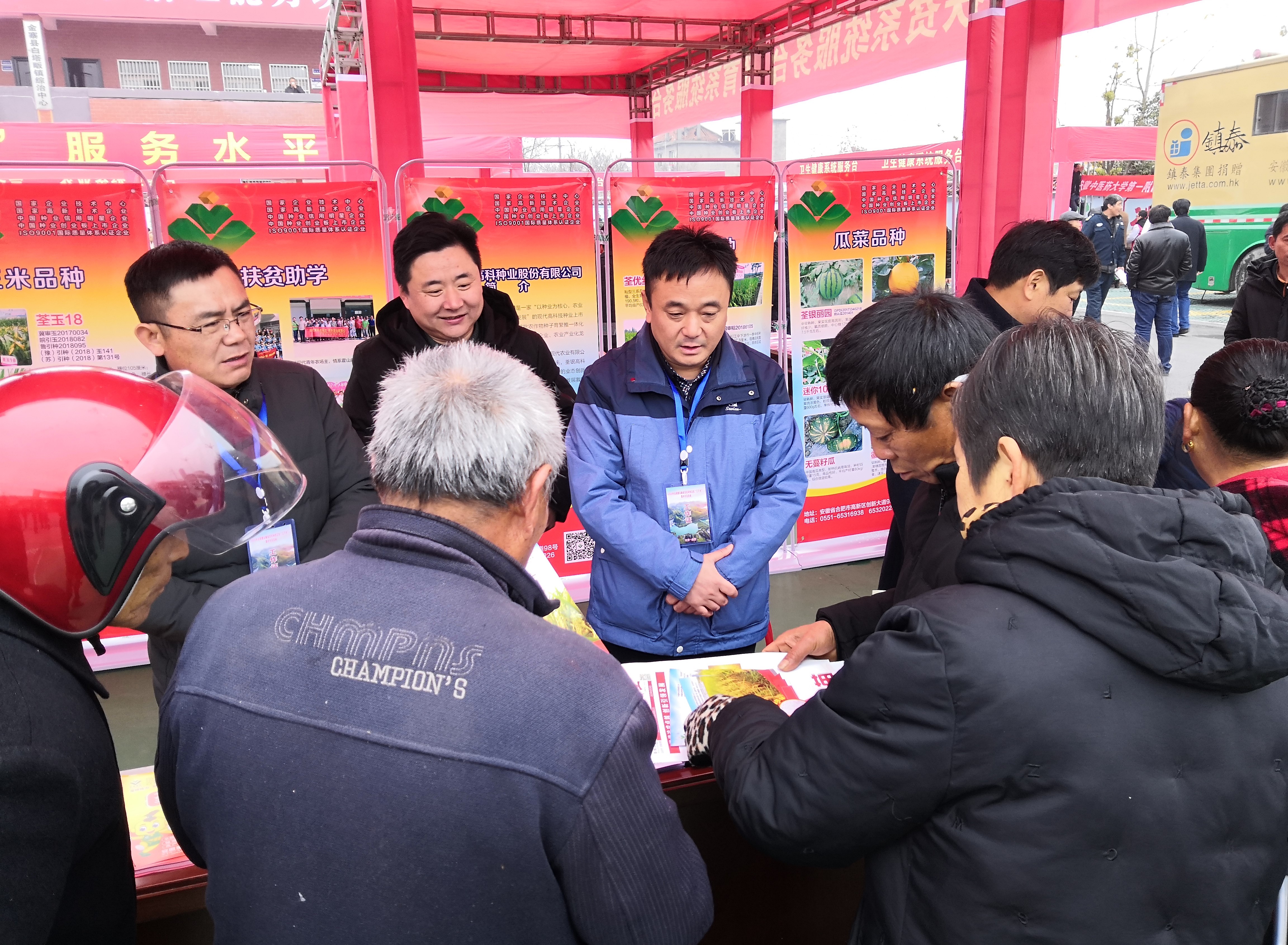 ? ? 荃銀高科作為種業上市公司,在發展壯大自身的同時積極履行社會責任。為了開展好本次活動,公司專門設立了科技“三下鄉”專家技術服務小組,公司副總經理、荃銀農科院院長、首席技術官張從合先生為組長,荃銀農科院副院長嚴志、荃銀瓜菜總經理錢奕道、安徽營銷公司總經理韓軍強、玉米專業公司總經理蘇法等為小組成員,現場為民眾答疑解惑,解答農業生產實際問題,引導“良種”與“良法”相配套的科學種植理念,助力脫貧攻堅,服務鄉村振興。